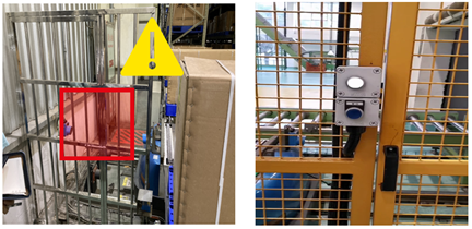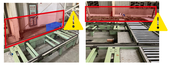 风险点:人员从输送线左右两侧进入堆垛机区域,堆垛机仍在运行,存在机械伤害。