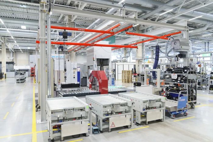 项目初期,该用户与德马格的长期合作伙伴突破性地采用门架系统替代传统墙或房顶悬挂方案,使装配区域与生产线的起重机运行轨道获得空前灵活性。这种设计使该用户能轻松调整作业区域,特别是便于扩展。另一考量是厂区标志性空中连廊,虽为访客带来独特体验,却限制了工作高度,迫使项目规划团队进行了精密计算。漫步在新的车间可见德马格KBK系统的多功能应用,项目规划团队决策过程充分吸纳了操作员的意见,为每个工位的起重机都针对具体货物与工序进行了定制。