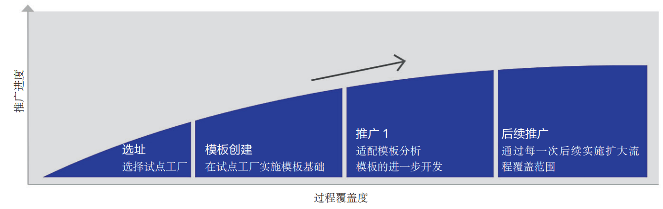 加速实施:通过创建一个基于成熟流程和最佳实践的模板,可以大大缩短新项目或新工厂的实施时间。预定义的开发成果可以立即投入使用,这加速了推广过程,同时允许通过针对特定工厂的定制化进行个性化调整。实施的条件同时也是挑战,即需要跨工厂的资源规划,以便可用员工能够最佳地利用其能力,而不会面临过载风险。这需要前瞻性的规划,以避免瓶颈或闲置。